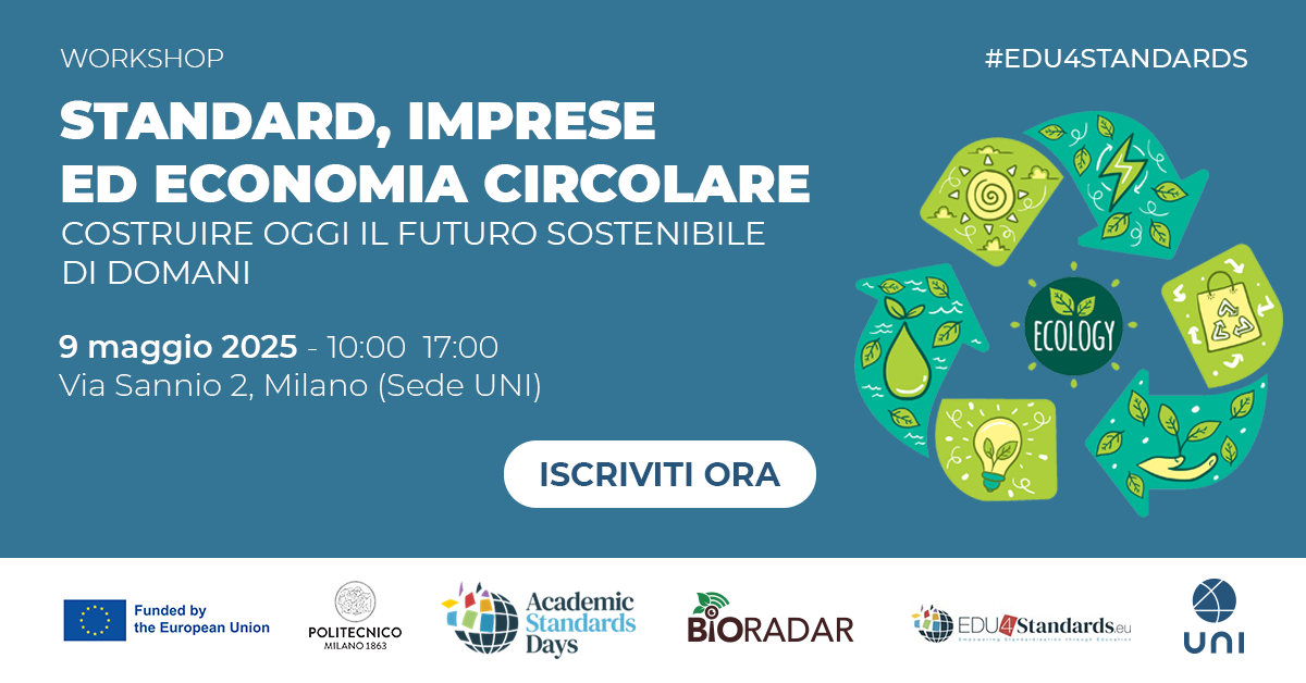 “Standard, Imprese ed economia circolare: costruire oggi il futuro sostenibile di domani”, è il nuovo workshop organizzato da UNI in collaborazione con il Politecnico di Milano, all’interno del progetto #EDU4Standards degli Academic Standards Days.