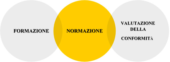 Il mondo della formazione si colloca a monte rispetto alla normazione in quanto ad esso gli esperti del tavolo si ispirano per l’elaborazione del contenuto della norma/PdR. Tale rapporto è in realtà biunivoco; difatti, a norma/PdR pubblicata, le scuole di formazione potranno adattare (se necessario) i propri corsi formativi, al fine di rispondere ai requisiti individuati dalla norma tecnica/PdR. La partecipazione ad un percorso formativo non garantisce, di per sé, il superamento degli esami di valutazione della conformità per l’ottenimento della certificazione.