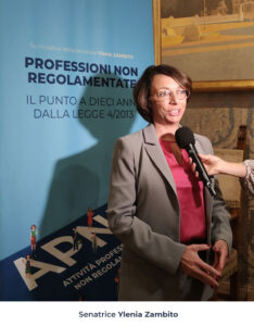 “La decennale applicazione della legge 4/2013, rivela il crescente impatto delle professioni non regolamentate in settori critici come i servizi sociali, la sanità e il lavoro. L’approccio basato sull’autoregolamentazione volontaria ha dimostrato l’efficacia nel garantire standard professionali elevati ma è fondamentale valutare l’evoluzione legislativa e il ruolo delle professioni non regolamentate in questi ambiti” afferma la Senatrice Ylenia Zambito, segretario della 10ª Commissione “Affari sociali, sanità, lavoro pubblico e privato, previdenza sociale”.